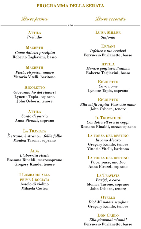 Il concerto comprenderà arie, duetti e pagine orchestrali tra le più significative della produzione verdiana.